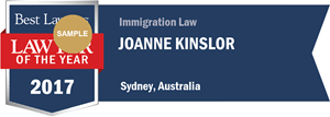 Joanne has been recognised in the Australian Financial Review in 2008, 2009, 2010, 2011, 2012, 2013, 2014, 2015, 2016, and 2017 as one Australia’s finest immigration lawyers through inclusion in Best Lawyers – Australia, Immigration Law. Recently, Joanne was voted the 2016-2017 Lawyer of the Year, Immigration.